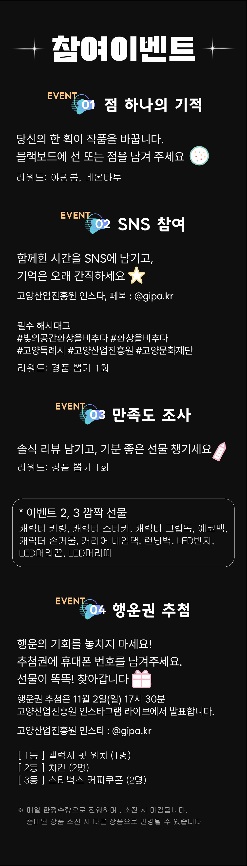 °¶·¯¸®´©¸® ºûÀÇ °ø°£ ȯ»óÀ» ºñÃß´Ù ½ÃÁð3 1¸íÀÌ ÃßõÇß¾î¿ä! Àå¼Ò °í¾ç¾Æ¶÷´©¸® °¶·¯¸®´©¸® ¹Ì¼ú°üÁ¤º¸ ÀÏÁ¤ 2025-10-17(±Ý) ~ 2025-11-02(ÀÏ) ½Ã°£ °í¾ç¾Æ¶÷´©¸® °¶·¯¸®´©¸® 4,5°ü[¸ÅÁÖ ¿ù¿äÀÏ ÈÞ°ü]¿ÀÀü 10½Ã ~ ¿ÀÈÄ 6½Ã ÀÔÀå·á ¹«·á ÇÒÀÎÁ¤º¸ ¡Ø ÇÒÀÎÁ¤º¸°¡ ¾ø½À´Ï´Ù. ÁÖÃÖ, ÈÄ¿ø ÁÖÃÖ : °í¾çƯ·Ê½ÃÁÖ°ü : °í¾ç»ê¾÷ÁøÈï¿ø, °í¾ç¹®ÈÀç´Ü ¿¬°è±³À° ¾øÀ½ ¹®ÀÇÀüÈ °¶·¯¸®´©¸® : 031-960-0182 ÀÔÀ忬·É Á¦ÇѾøÀ½ Å׸¶